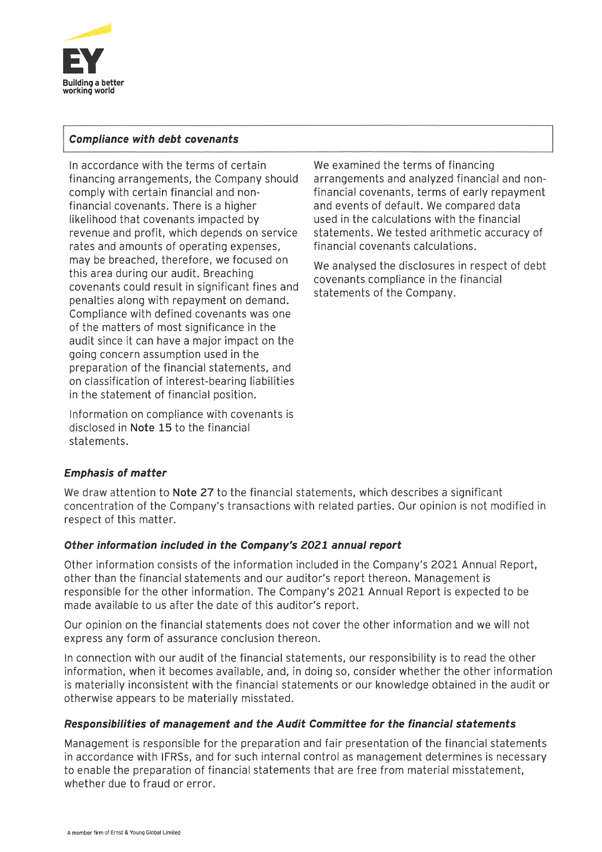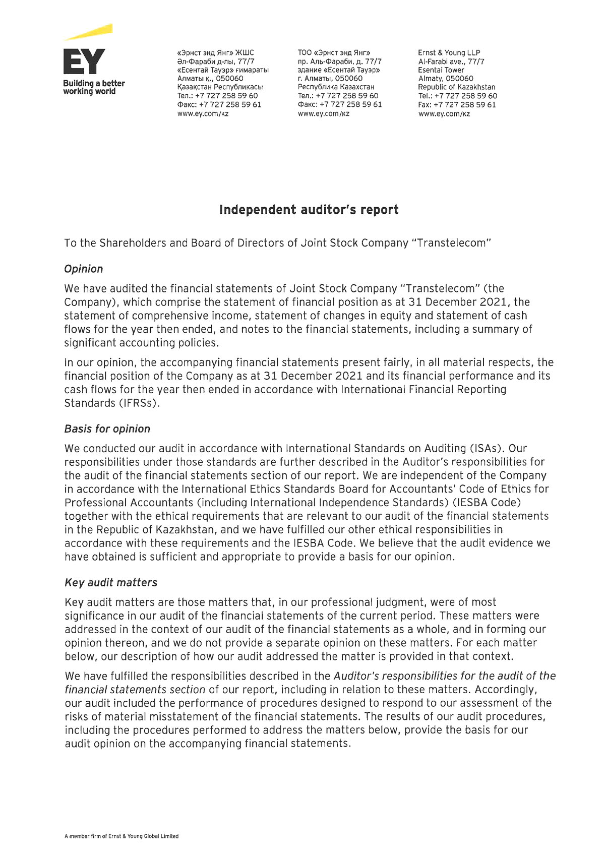 Management is responsible for the preparation of the financial statements that present fairly the financial position of Transtelecom JSC (the “Company”) as at 31 December 2021, and the results of its operations, cash flows and changes in equity for the year then ended in compliance with International Financial Reporting Standards (“IFRSs”).
