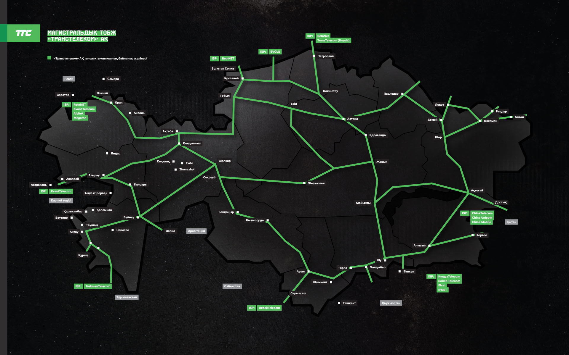 «Транстелеком» АҚ көптеген жылдар бойы ішкі және халықаралық нарықтарда сапалы байланыс қызметтерін ұсыну бойынша белсенді қызмет жүргізіп келеді. Біздің серіктестер – бұл сапалы телекоммуникациялық қызметтер бизнес жүргізудің қажетті шарты болып табылатын ірі компаниялар.